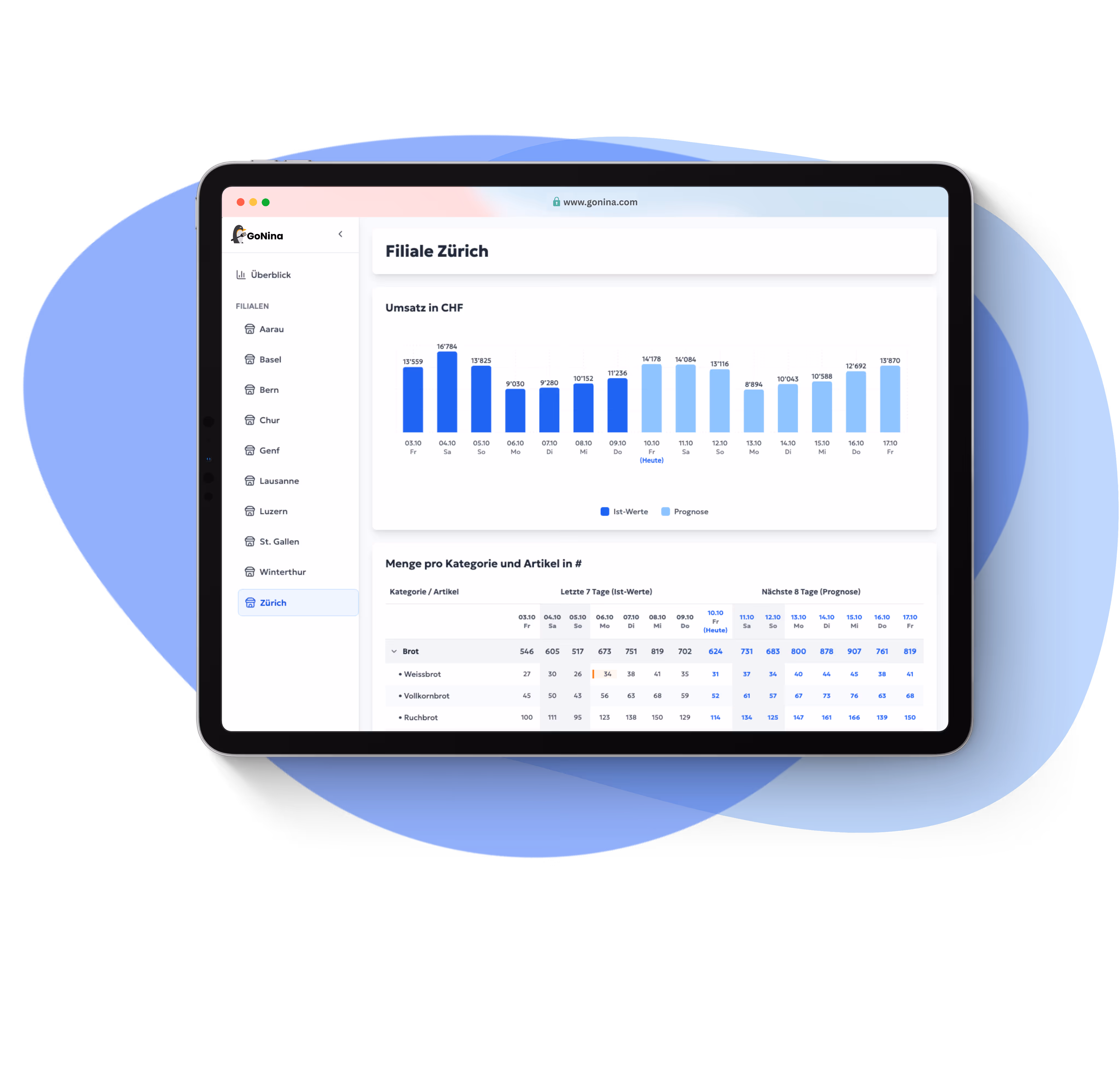 GoNina schafft Klarheit und liefert aus Verkaufs- und Standortdaten automatisch Prognosen – so bleibt mehr Zeit fürs Geschäft.