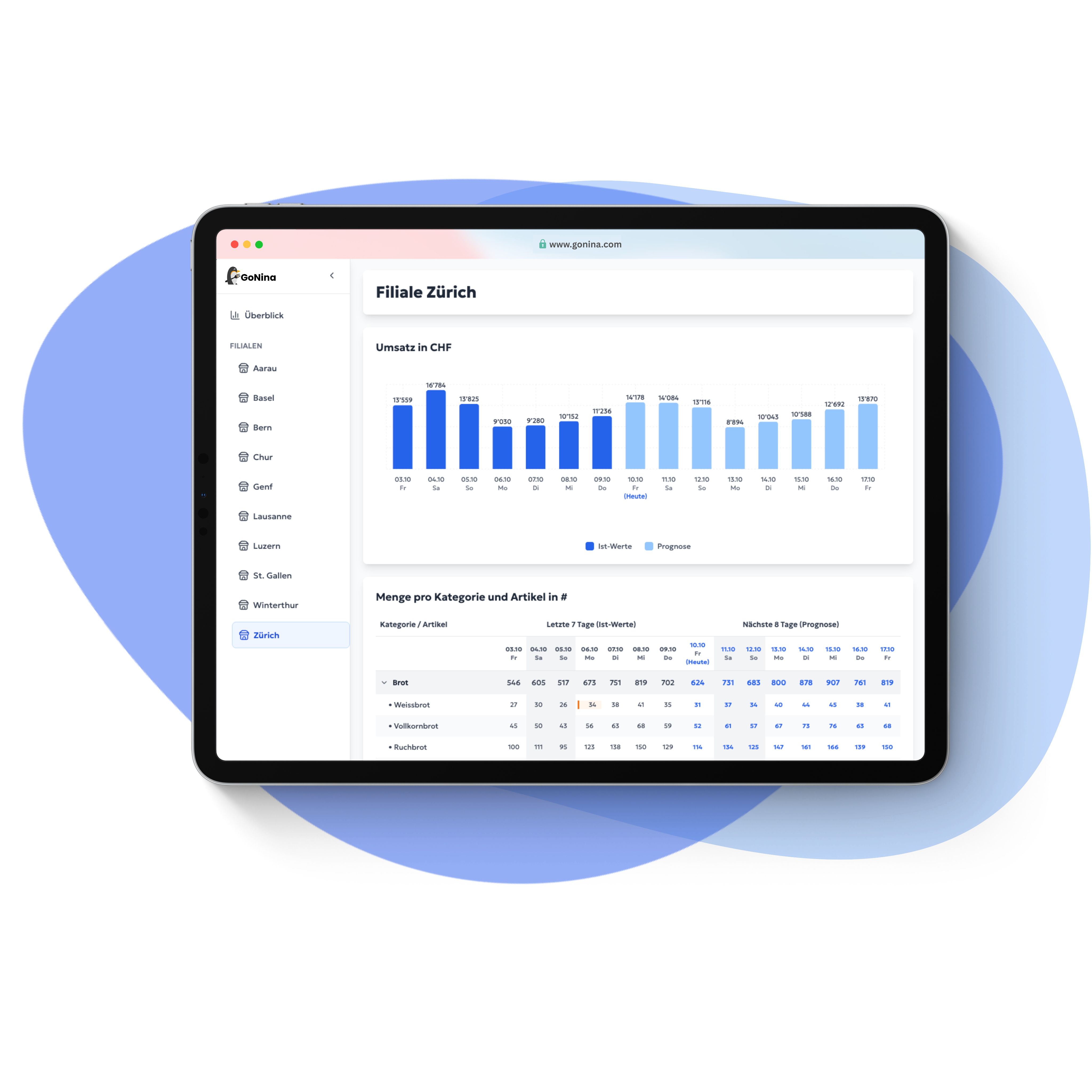 GoNina schafft Klarheit und liefert aus Verkaufs- und Standortdaten automatisch Prognosen – so bleibt mehr Zeit fürs Geschäft.